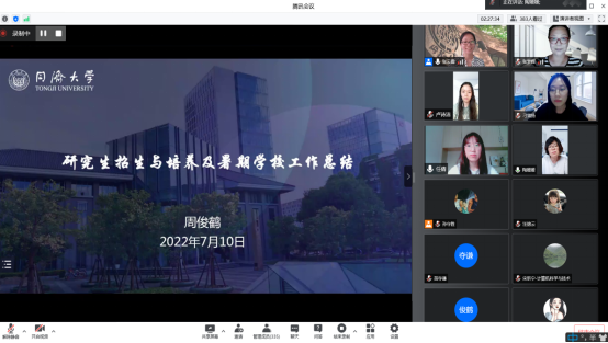 在人工智能领域所付出的努力、已取得的成果和未来发展前景,希望同学们能脚踏实地参与到智能科技前沿领域的研究中来。第九届暑期学校优秀学员、2021级直博生李沁哲同学从报考我校的初衷、就读后的学习和生活体会方面分享了自己的经验和感想,鼓励本届学员报考我校,未来充分享受同济的校园生活。最后,各学科分别组织宣讲,并向学员公布考试规则。开幕式由副院长周俊鹤教授主持,各系主任和研究生教务员出席了开幕式。