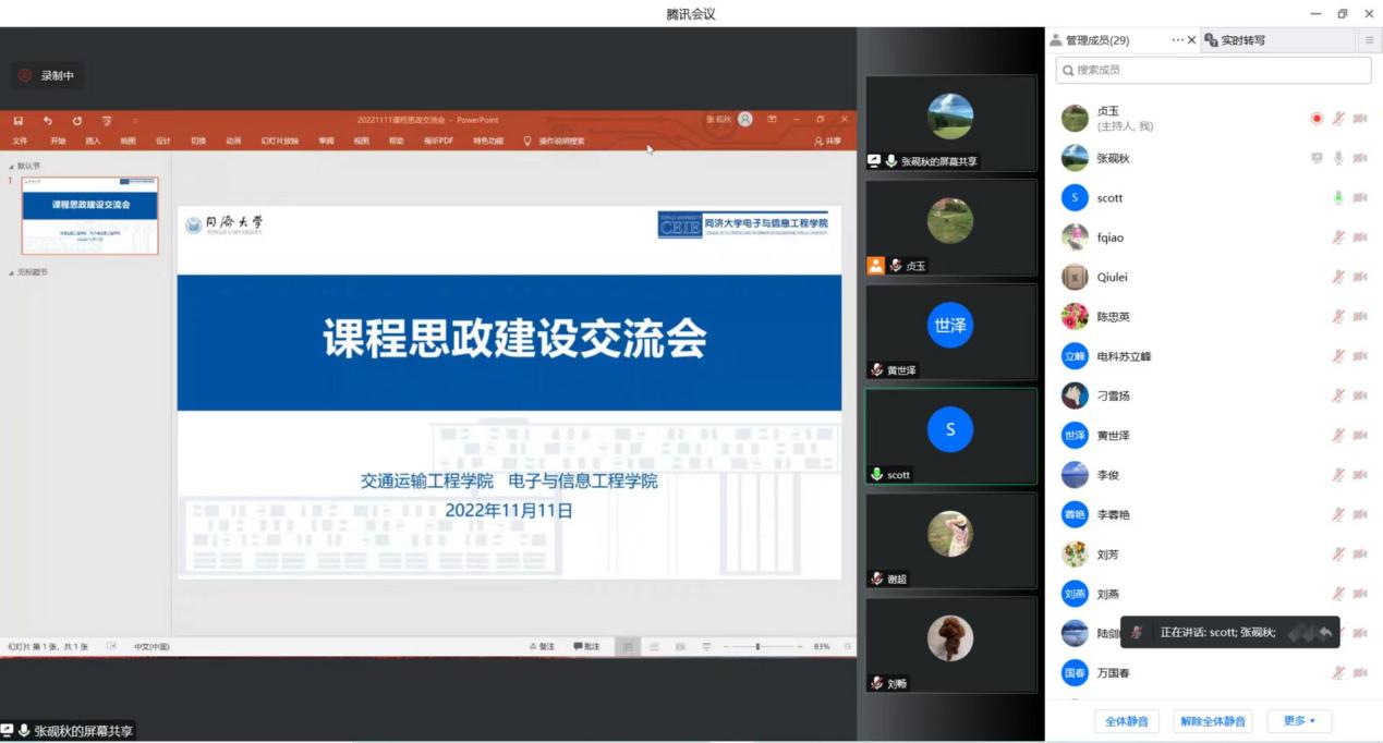 课程思政建设项目的成员开展了线上交流会。会议由学院研工办主任张砚秋主持,近40名教师参加了此次交流活动。