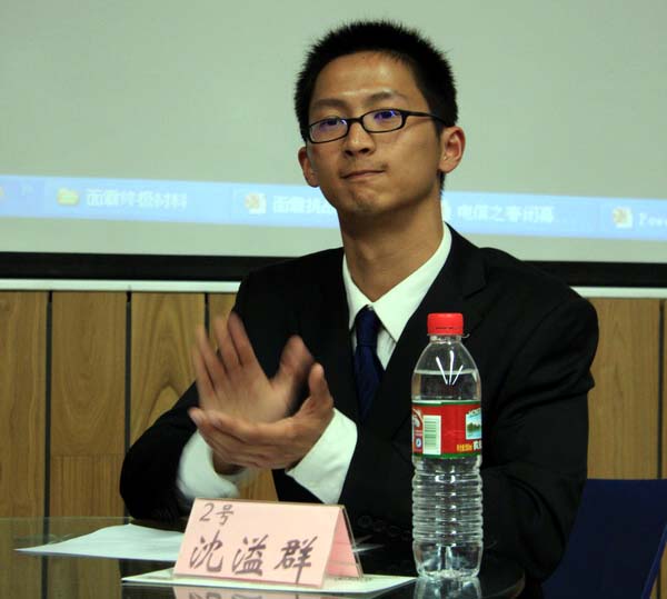 经过前期笔试、面试,共有来自不同学院的六位选手入围“面霸”挑战赛终极挑战。比赛在内容丰富,形式多样的“自我展示”中拉开帷幕;接下来的“绝对挑战”,充分展示了各位选手的创业素质和写作能力;“情景模拟”针对一个具体的职场问题,考验选手在真实环境下的决策力、洞察力、职业道德等;“唇枪舌剑”则体现了各位选手的逻辑分析能力和思辨能力。