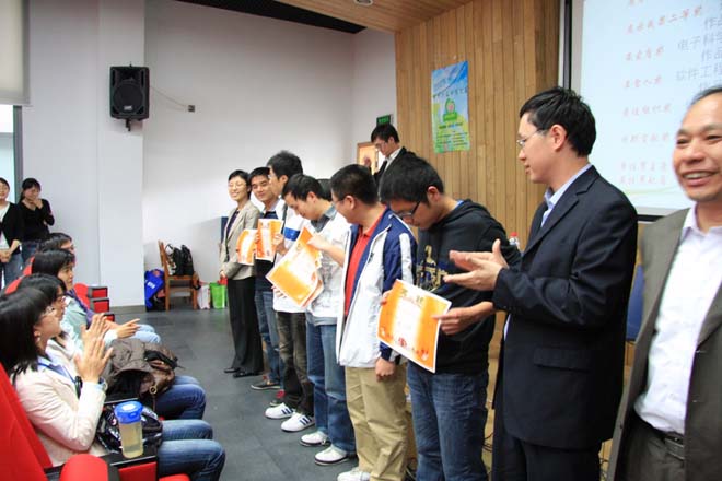 4月29日,学院第十六届电信之春闭幕式暨第二届“面霸”挑战赛在电信大楼117隆重举行,来自学院各个专业的研究生一百多人观看了比赛,学院党委副书记乔非观看了比赛并致闭幕辞。