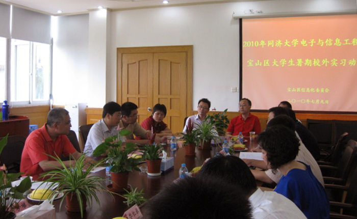 宝山校外实习基地首批暑期实习学生进驻基地仪式在宝山区信息委举行。宝山区信息委主任浦志良等领导,我校教务处副处长王晓国、实践科科长张勤,学院副院长苗夺谦、学院教务、教师代表,以及来自探花直播