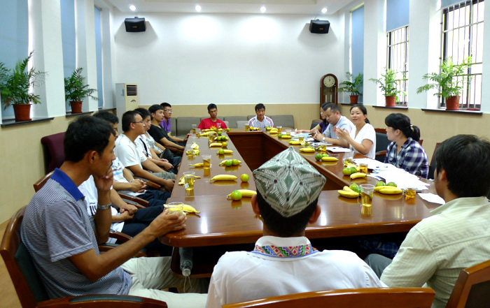 刚入校的2010年级14个来自新疆各个地区的本科生一起参加茶话会共庆节日,院党委副书记董变林主持了茶话会。