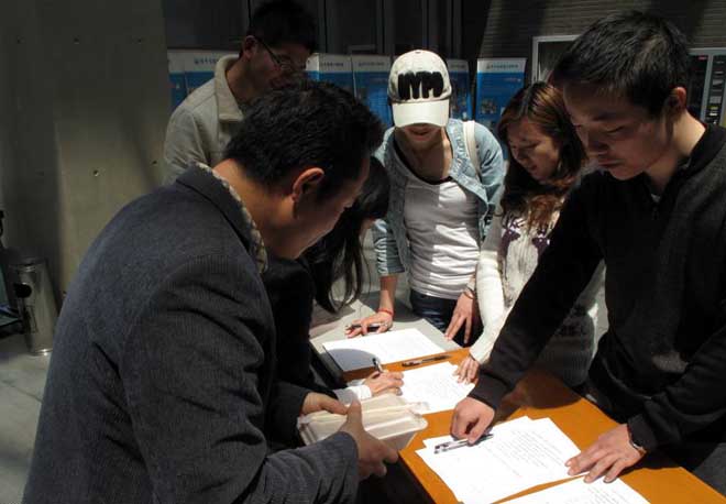 为了进一步加强研究生诚信教育,引导研究生树立诚信意识,4月25日上午,电气信通联合党总支10级研究生在电信楼一楼大厅举行“加强学术规范,捍卫学术殿堂”签名活动。