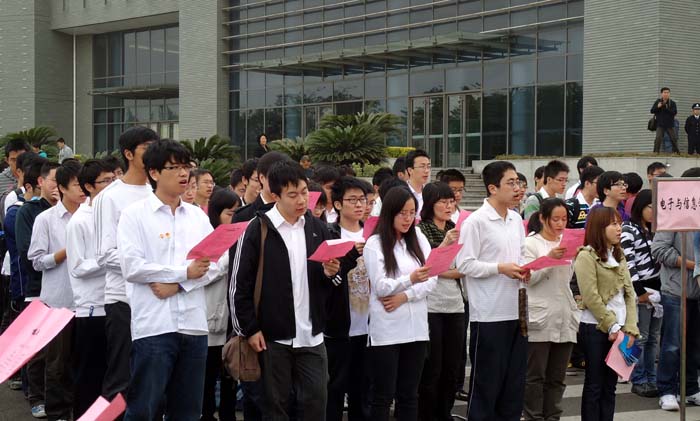 仪式在庄严的国歌声中开始。优秀师生代表朗诵了《青春中国》;校团委书记杨元飞宣读了《关于表彰2010学年探花直播