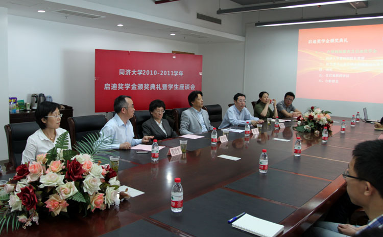 党委书记童学锋、院长陈启军、副院长乔非、党委副书记董变林及学校基金会负责人出席了颁奖仪式。颁奖仪式由电信息学院院长陈启军主持,吴启迪教授亲自为09级自动化刘士尧、09级计算机科学与技术俞丁胜、09级电子信息工程任毅3位同学颁奖。