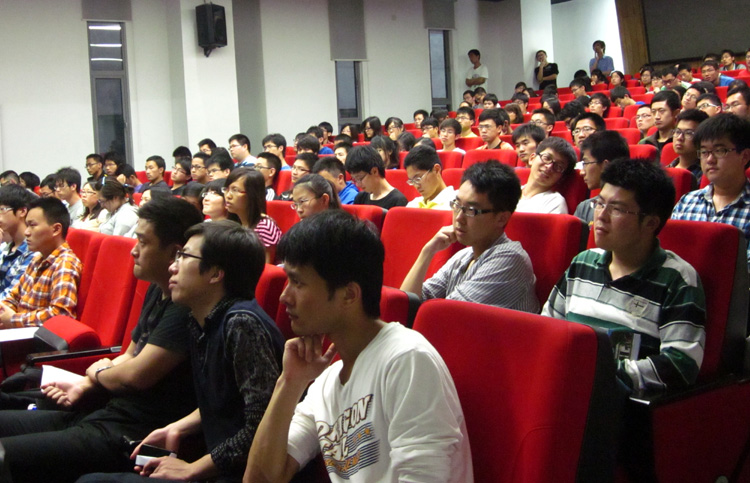 授证仪式结束后,杨浩先生为与会同学作了题为“我的IT职业生涯”报告。他在报告中结合自己的学习和工作经历,从专业学习、职业选择、定位和提升自己的职业竞争力等方面,和学弟学妹们分享自己的生涯经验和心得。最后,他还通过互动交流的方式,为学弟学妹们未来的职业发展提出了指导性的意见。