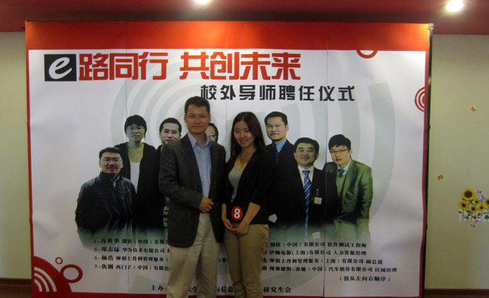 6月5日下午,第一批校外导师聘任仪式在嘉定校区同德楼隆重举行。学院党委副书记董变林代表学院,为第一批校外导师――摩根士丹利管理服务(上海)有限公司副总裁杨英杰先生、摩根士丹利管理服务(上海)有限公司执行董事杨浩先生、伊顿电源(上海)有限公司人力资源经理陈新力先生、西门子(中国)有限公司高级销售经理仇钢先生、华为技术有限公司招聘经理郑志猛先生、梅赛德斯―奔驰(中国)汽车销售有限公司区域经理涂宁南先生、微软(中国)有限公司测试主管肖世华先生、微软(中国)有限公司软件测试工程师周成燕女士等8位导师一一颁发了聘书。