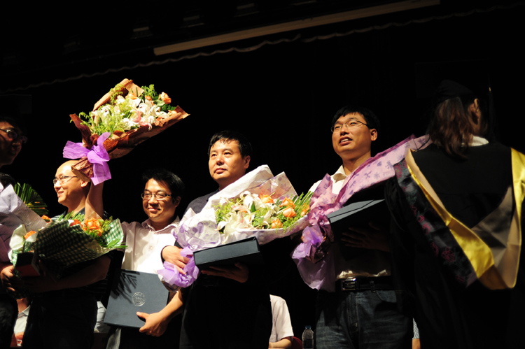 的优秀毕业生,并为学生代表颁发了毕业证书和学位证书。此外,毕业生代表还为他们自己所评选出来的“最可爱的专业教师”献花,表达对老师的祝福。