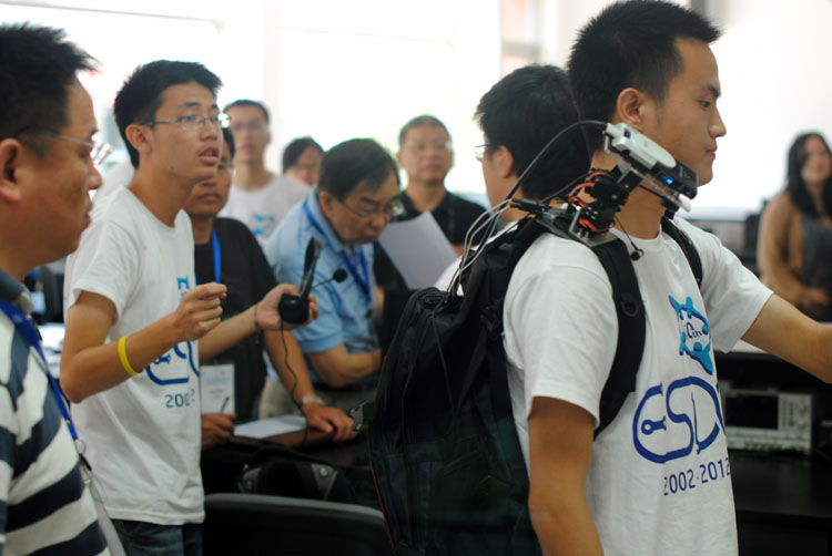 7月25日上午,来自教育部高等教育司、工业和信息化部人事教育司、教育部评估中心、上海市教育委员会、竞赛组委会及专家组、英特尔公司的领导以及企业界人士济济一堂,与各参赛院校的教师和同学代表一同出席了大赛的颁奖典礼。在颁奖大会的实物展示和交流活动中,我校参赛作品的功能和创意得到了国内外专家、工程师及各高校老师的一致认可。(叶 晨)