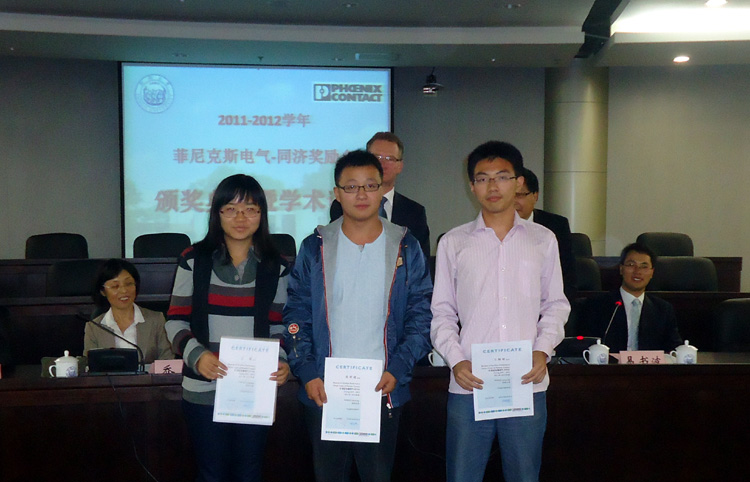 10月22日,2011―2012学年菲尼克斯电气―同济奖励金颁奖仪式在嘉定校区同心楼124会议室举行,德国菲尼克斯电气集团高级执行副总裁、探花直播