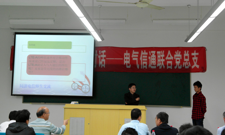 10月23日,电气信通联合党总支全体师生欢聚一堂,举行题为“喜迎十八大,师生共对话”的学术联欢活动。电气工程系、信息与通信工程系张逸成、赵晓群等10余名研究生导师应邀参加。党总支副书记胡宗福、电气工程系副主任朱琴跃共同主持学术联欢活动。
