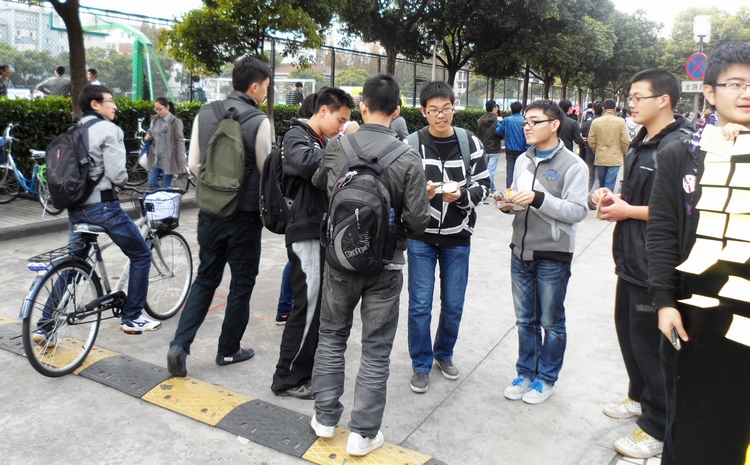 团学联志愿者部利用中饭和晚饭时间,选择人流量较多的地方,进行了“慈善,你怎么看?”的宣传和采访活动。