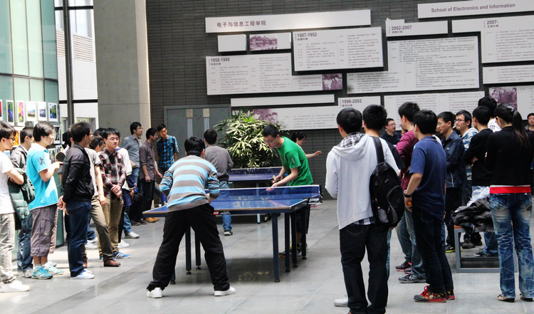 “不打不相识,爱乒才会赢”――计算机系第三届师生乒乓球友谊赛于4月17日在电信大楼一楼大厅圆满结束。