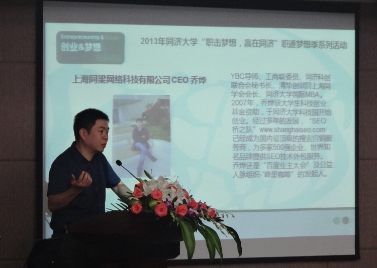 “职击梦想,赢在同济”职通梦想季系列活动正在如火如荼的进行中,6月6日下午,主题为“创业 & 梦想”创业论坛在嘉定校区济人楼405会议室举行。出席本次论坛的嘉宾有资深创业导师李肖鸣博士、上海同梁网络科技有限公司CEO乔烨和上海同化新材料科技有限公司创始人崔永坤。