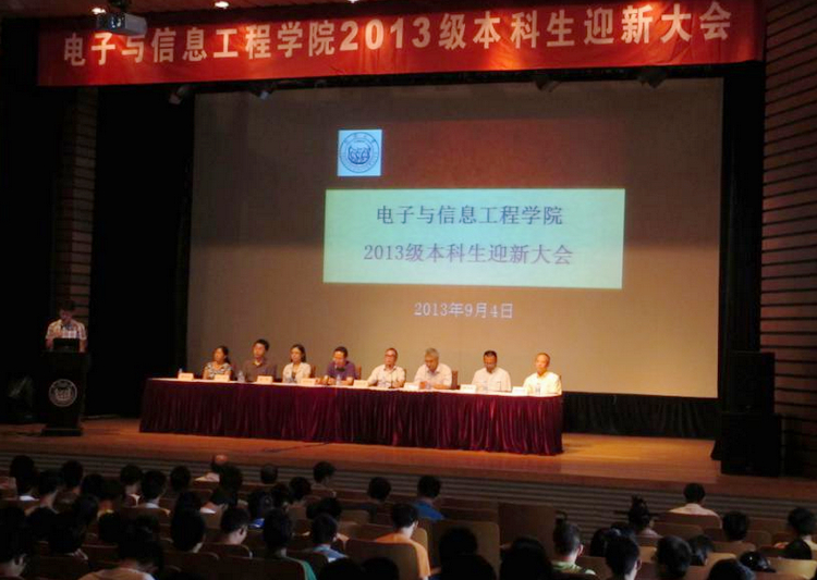 2013级本科生迎新大会在四平路校区129礼堂隆重举行。学院党委书记童学锋,院长陈启军,党委副书记兼副院长乔非,副院长苗夺谦、金立军、赵卫东,党委副书记向阳、董变林,各系主任、新生辅导员及2013级新生齐聚一堂,共同迎接崭新的大学生活。会议由党委书记童学锋主持。