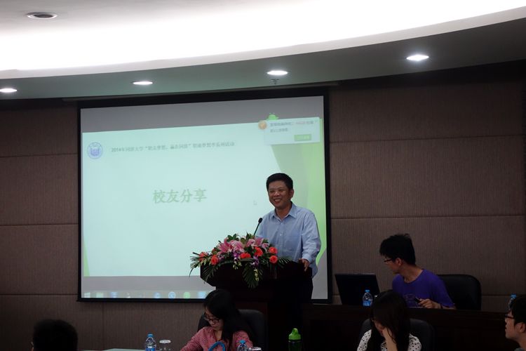 研究生会主办的“讲述您的故事,启迪我的梦想”杰出校友成长分享论坛在嘉定校区济人楼405会议室举行。衡诚电力有限公司总裁龚伟华先生、万达信息股份有限公司人力资源部经理周燕芳女士、施耐德电气建筑能效支持中心总监孙靖先生、德州仪器半导体上海公司资深EDA石松华先生应邀参加了分享会,分享自己的故事,引发同学们对于未来的思考。我校研究生工作部副部长宋木生老师、探花直播