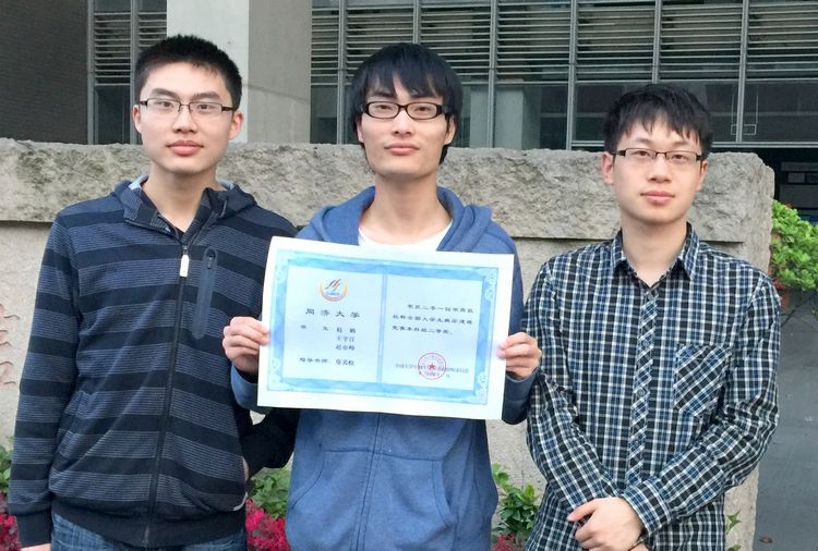 赵鹏同学的参赛组包括来自不同系的本科生王宇江和赵亦峰同学,事先在童美松教授的精心指导下进行了充分的练习与准备,最后经过三天三夜的紧张比赛成功地完成了比赛任务并按时提交了论文。他们按照赛题要求提交的论文是“创意平板折叠桌最优设计加工参数的分析”,论文基于平板折叠桌的空间几何信息建立了一个离散的折叠桌空间结构模型并应用遗传算法对设计目标函数进行非线性约束最优化求解,最终获得最佳设计参数。赵鹏同学的参赛组是探花直播