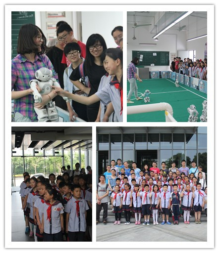 “飞思卡尔”智能车实验室、机器人实验室、嘉定校区图书馆及校区其他建筑。小学生们对大学校园里的科技作品充满了兴趣和期待。随后,他们对图书馆进行了参观,还体验了电子借阅系统的便捷。最后,在志愿者的带领下,他们还参观了校园,了解了校园的主要建筑以及含义。
