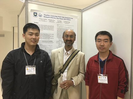 实验室成员陈莘莘(左)、王昕(右)与ACM SIGCOMM协会主席、加拿大滑铁卢大学计算机学院院长Keshav教授(中)的合影。