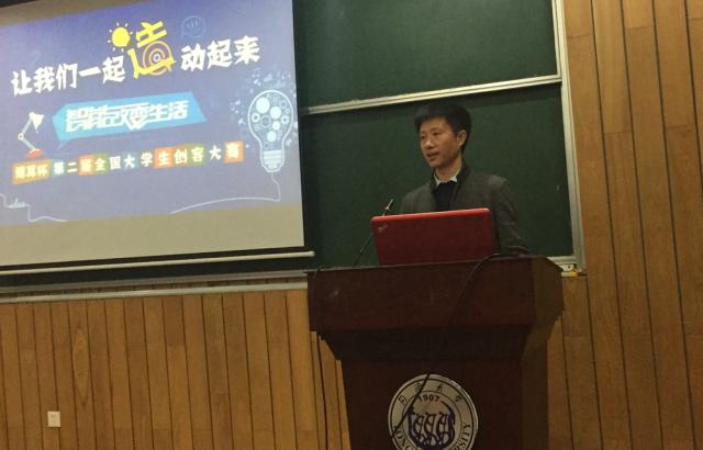 团委组织的创新创业讲座暨“博耳杯”全国大学生创客大赛校园宣讲活动在嘉定校区智信馆117报告厅举行。博耳云科技有限公司技术&市场总监王正山、博耳集团新媒体推广经理刘青松、展宣部王乐及探花直播