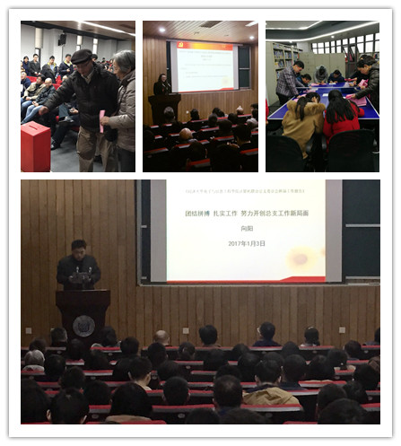 计算机联合总支委员会作了题为“团结拼搏,扎实工作,努力开创总支工作新局面”的工作报告。报告从深化基层组织建设、推进研究生思政教育、配合行政开展学科建设、建设考核制度体系等几个方面回顾了近几年总支的工作,并强调党员以身作则的作风是党组织在各项工作中发挥作用的前提,制度建设与落实是基层党组织规范开展各类活动的保障,多种形式密切联系群众是服务全系教职工的有效手段。报告最后也并对下一届党总支的工作提出了希望。