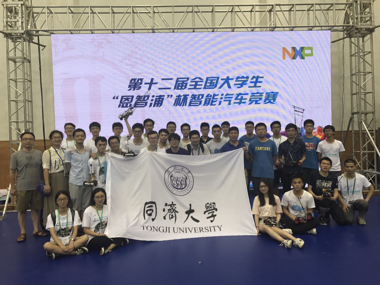 同学由控制系朱劲老师和张志明老师带队,经过一年的认真实践和三个月的紧张备战,在比赛中沉着应对,稳定发挥,最终再创佳绩。由陈浩、钟政、黄映三位同学组成的“奇哥带队”取得光电四轮组一等奖;由石文博、孙晓娴、钟献有三位同学组成的“浩哥带队”取得光电直立组一等奖;由李若白、马绮铭、应旻婕三位同学组成的“树哥带队”取得电磁节能组一等奖;由寿佳鑫、哈星伯、唐亮、方堃四位同学组成的“小德带队”取得双车追逐组三等奖。