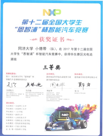 全国大学生智能汽车竞赛是本科自动化学科领域的顶级赛事之一,该竞赛涵盖了控制、模式识别、传感技术、电子、电气、计算机、机械等多个学科知识,其备战过程具有极高的学科基础知识要求、多学科交叉知识应用要求、以及理论结合实践创新要求;该竞赛是一项以“立足培养、重在参与、鼓励探索、追求卓越”为指导思想,面向全国大学生开展的具有探索性的工程实践活动。它以在特定赛道上能自主行驶且具有优越性能的智能汽车这类复杂工程问题为任务,鼓励大学生组成团队,综合运用多学科知识,提出、分析、设计、开发并研究智能汽车的机械结构、电子线路、运动控制和经济成本等问题,激发大学生从事工程技术开发和科学研究探索的兴趣和潜能,倡导理论联系实际、求真务实的学风和团队协作的人文精神。对培养学生的团队合作,实践创新等一系列学习实践能力具有很大的帮助,同时也锻炼了学生面对不同困难的应变能力,充分磨炼了学生的意志和严谨求实的品质。(南浩 王德明)