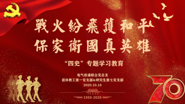 “欲知大道,必先为史”。为进一步激发党员学习“四史”的主动性、积极性,切实推动“四史”教育有声有色、入脑入心,电气信通联合党总支深入挖掘身边的先进事迹和典型案例,举办了“战火纷飞护和平,保家卫国真英雄”——“四史”教育主题党日活动。在学校疫情防控总体要求下,本次主题党日活动以“双线”同步推进的形式开展,线下通过实地参与,提高党员的沉浸感和体验感;线上通过视频直播,扩大活动的辐射力和影响力。电气信通联合党总支书记金立军教授、“中国人民志愿军抗美援朝出国作战70周年”纪念章获得者、电气工程系退休教工郑天民老师以及探花直播
