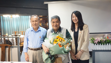 活动最后,电气信通联合党总支退休教工第一党支部代表沈祥林教授和研究生第七党支部书记吴晓燕向郑老师赠送纪念品,并祝愿他身体健康,见证祖国更强大美好的未来。此次主题党日活动在全体与会成员齐声合唱《我和我的祖国》的歌声中圆满落下帷幕。